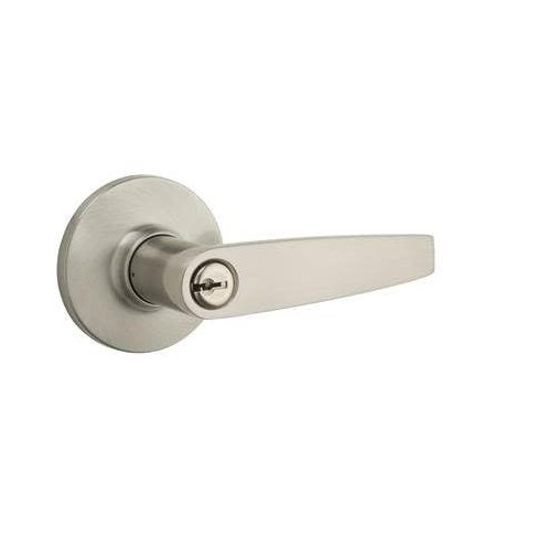 Kwikset montara front entry door lock handleset juno knob satin nickel finish.